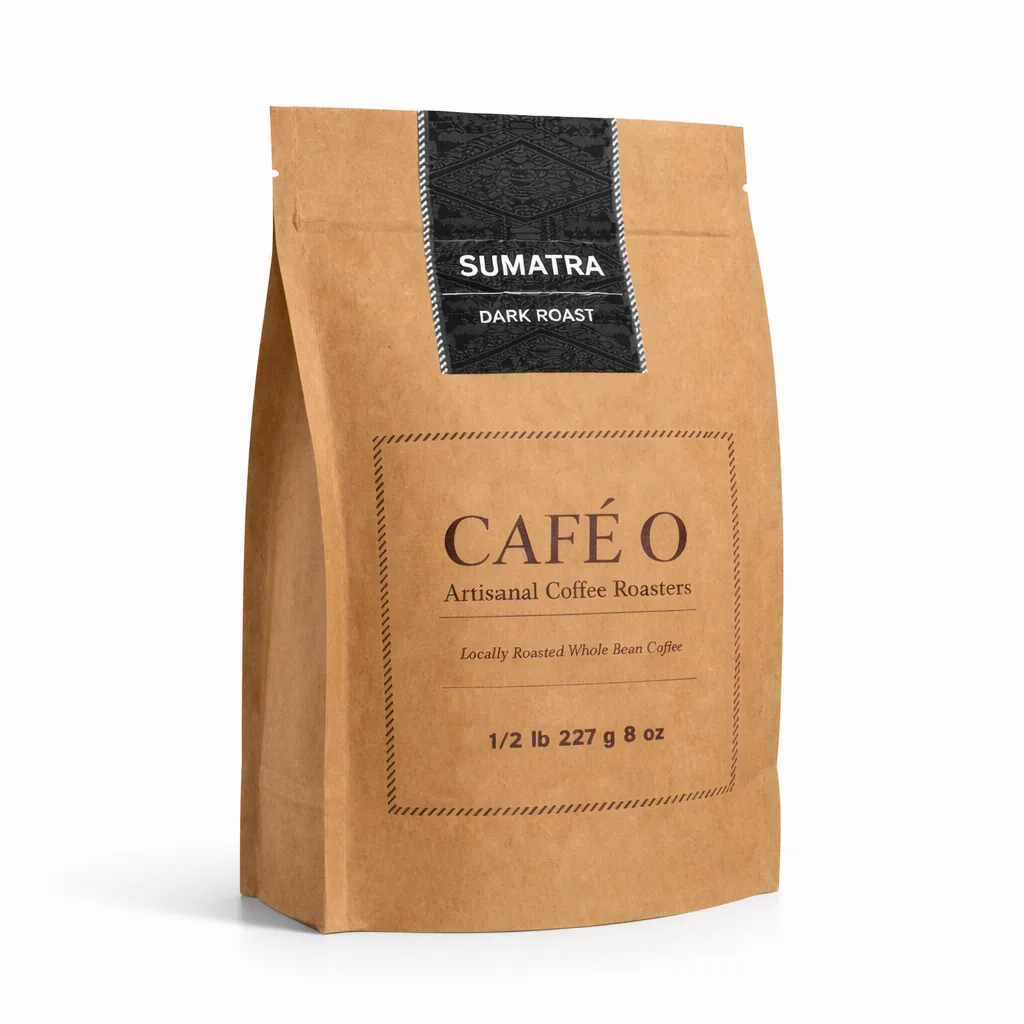 Our Sumatra is grown on the slopes of Mount Leuser near the port of Padang in the Mandheling region of Indonesia. Processed using the wet-hulled method unique to Indonesia, these beans develop a remarkably full body with earthy depth, low acidity, and intense sweet tones of chocolate. This dark roast is perfect for those who crave a bold, satisfying cup that stands up beautifully to milk or cream.